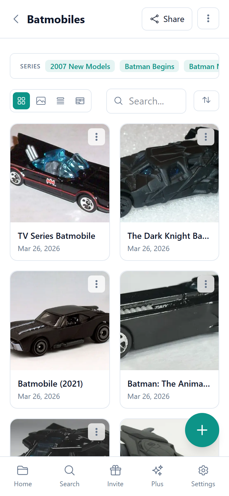 Different ways to look at your collection — gallery, list, table, and search.